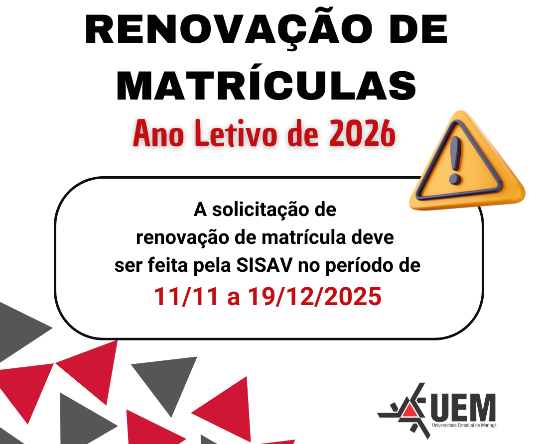 ÚLTIMA SEMANA PARA RENOVAÇÃO DE MATRÍCULA PARA O ANO LETIVO DE 2026