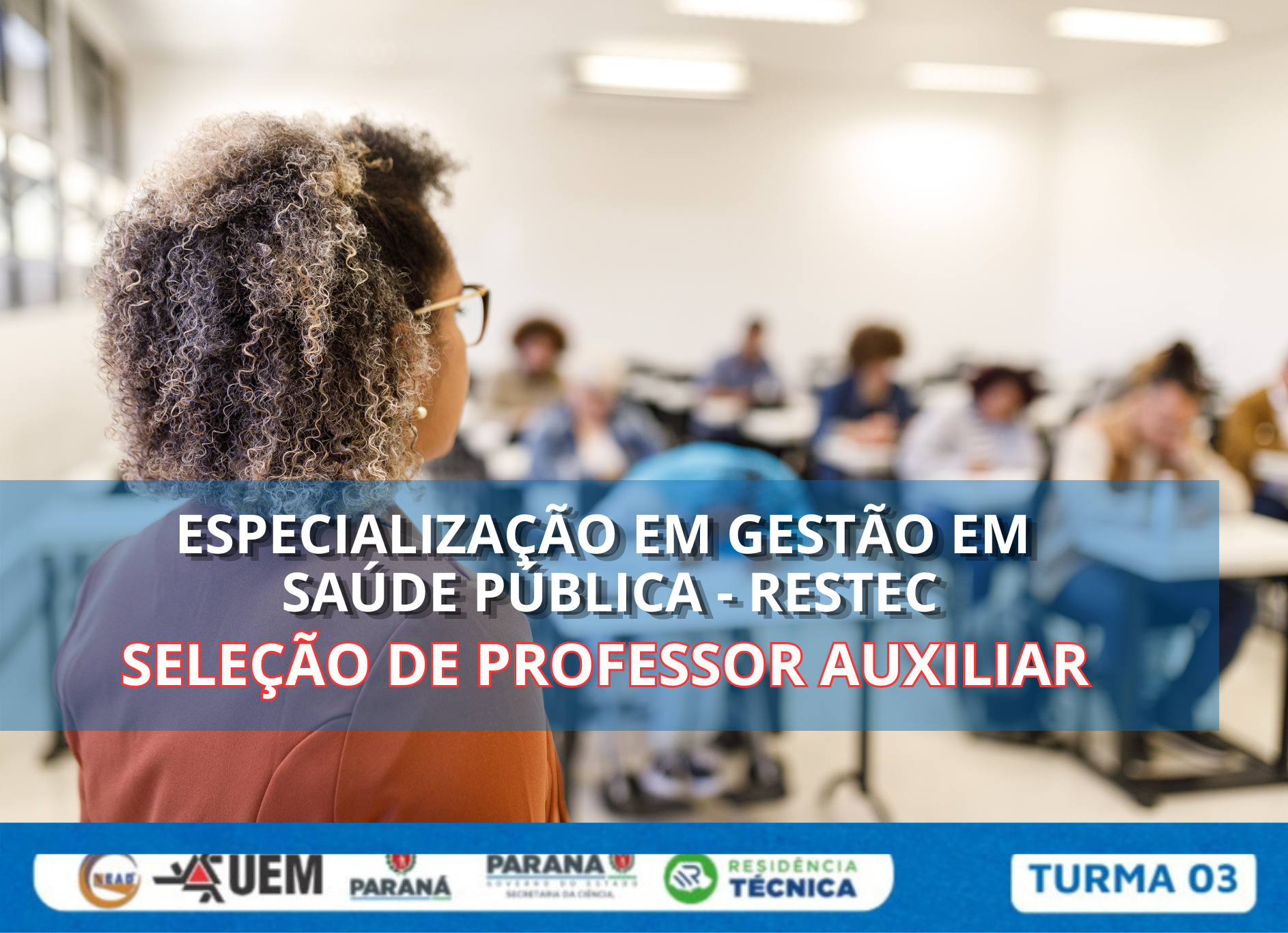 RESTEC EM GESTÃO EM SAÚDE PÚBLICA (Turma 3) CONTRATA PROFESSOR AUXILIAR